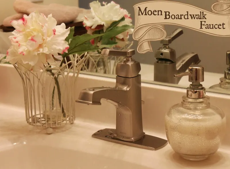 Finally! A new faucet for my bathroom! It’s something I’ve wanted to do for quite a while but to be honest, it’s at the bottom of the priority list. We’ve replaced the kitchen and main bath faucet already but in the master bedroom, I’m the one who mostly sees and uses it. We are in the middle of redecorating the bedroom so it’s nice the sink area can be updated as well. Moen offered this beautiful Moen Boardwalk 1-Handle bathroom faucet in Spot Resist for us to install and enjoy.